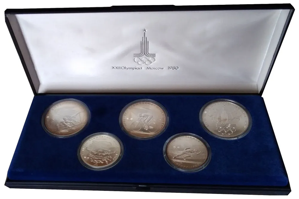 40 Rubel Silbermünzen – Satz Olympiade 1980 Moskau im Etui