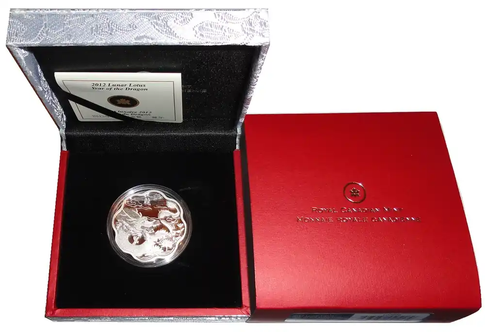 Start » Silbermünzen » Weltweiter Versand Kanada 15 Dollars Silbermünze Drache Lotus 2012 PP im Etui