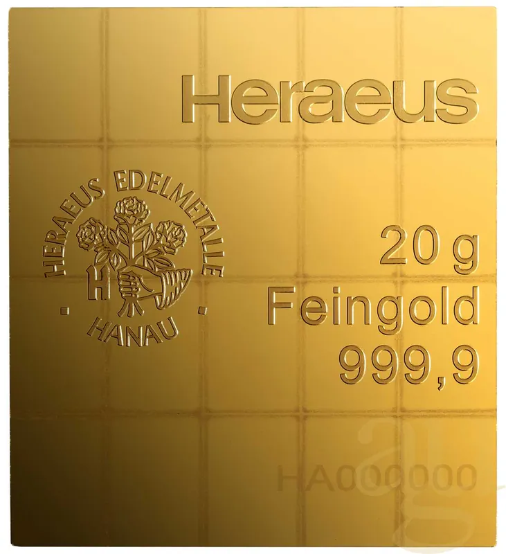 Start » Gold » Wochenendangebot 20 x 1g Gold Heraeus Combibarren / Goldtafel / Tafelbarren