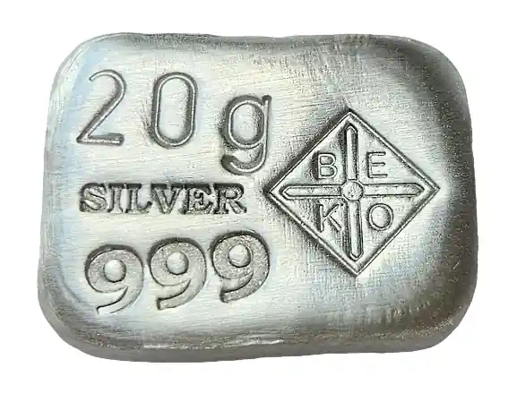 BeKo Edelmetalle 20 Gramm Silberbarren 999 Feinsilber (gegossen) Sammlerbarren