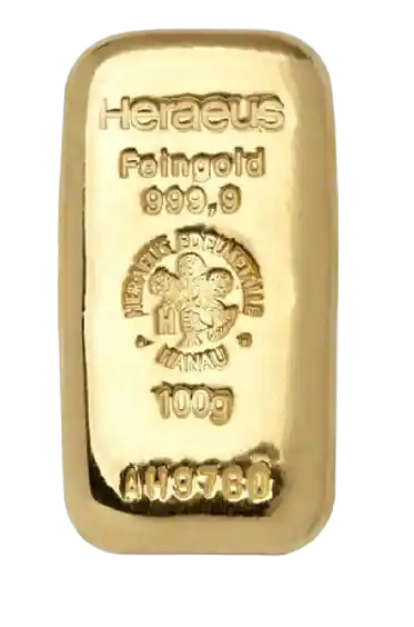 Start » Bestseller » Zertifiziert 100 Gramm Goldbarren | Heraeus mit Zertifikat – gegossen