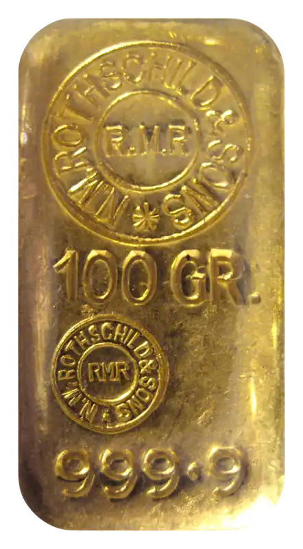 Start » Gold » Zertifiziert 100 Gramm Goldbarren Rothschild ohne Gegenstempel